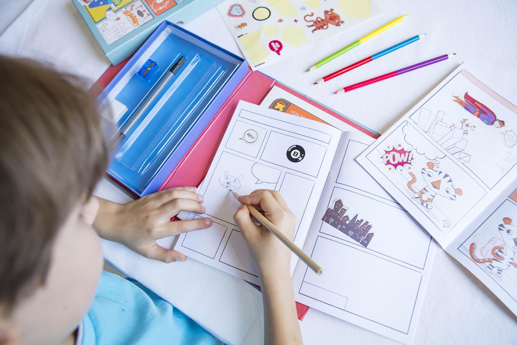 Do you have a budding comic book artist in your house? Get their creative juices flowing with Tiger Tribe’s Comic Book Kit - Practice. Plan. Create — a fabulous, all-in-one set filled with everything you need to create your very first comic!
